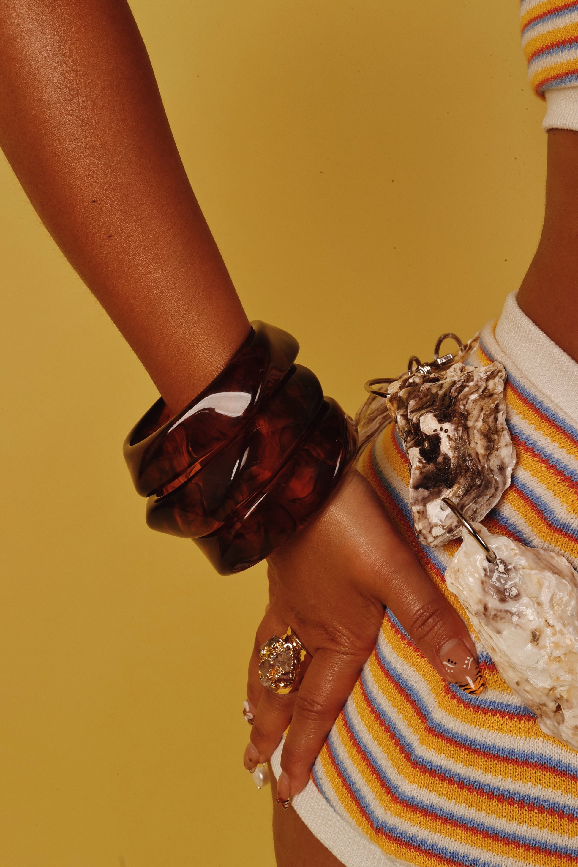 Each bangle has a different hue of brown and it is sold as a pair of two.