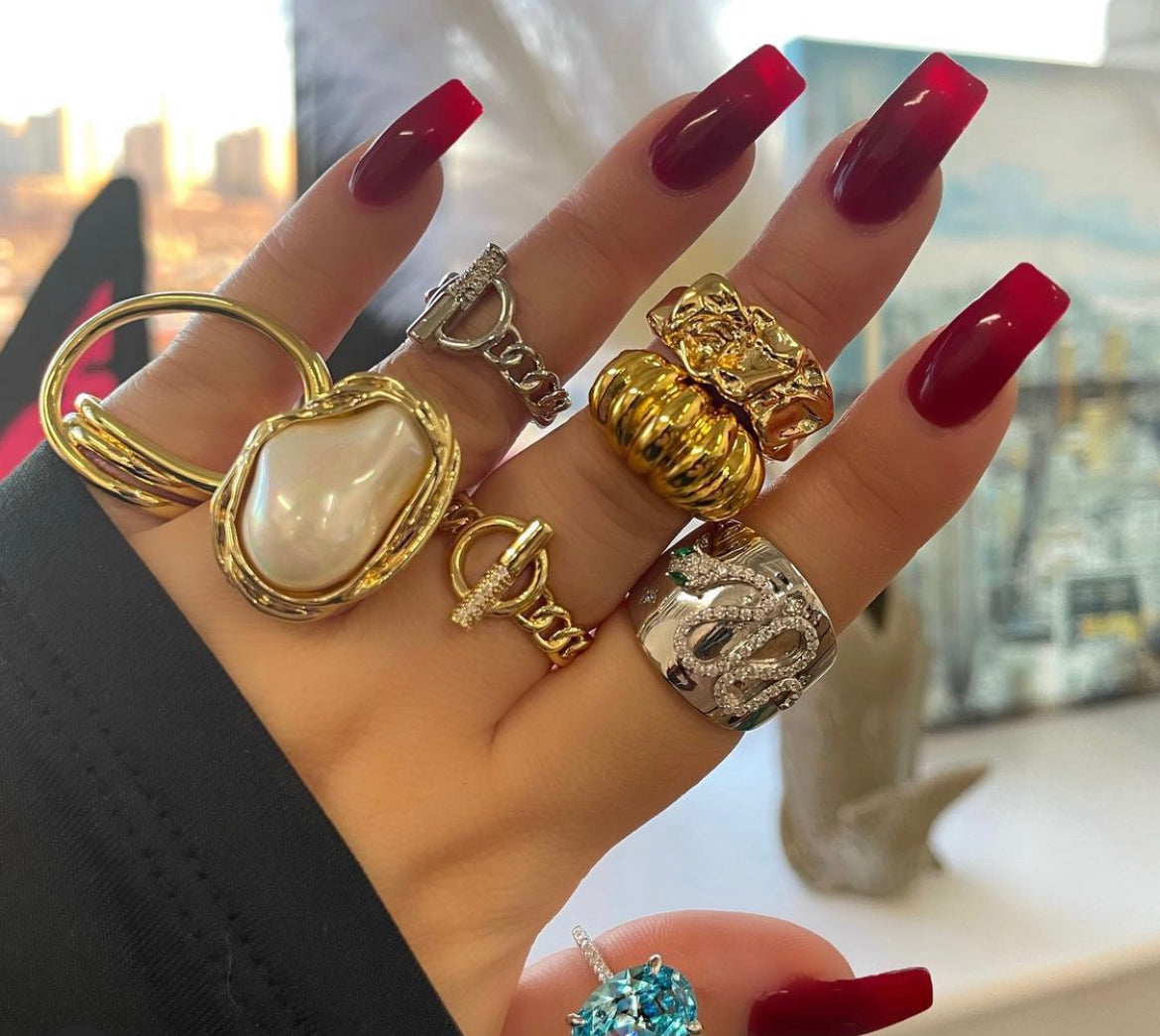 Paired with: Dramatic Pearl Ring, Modern Nugget Ring, Gold Croissant Ring, Modern Serpent Ring, Icy Ellie Ring